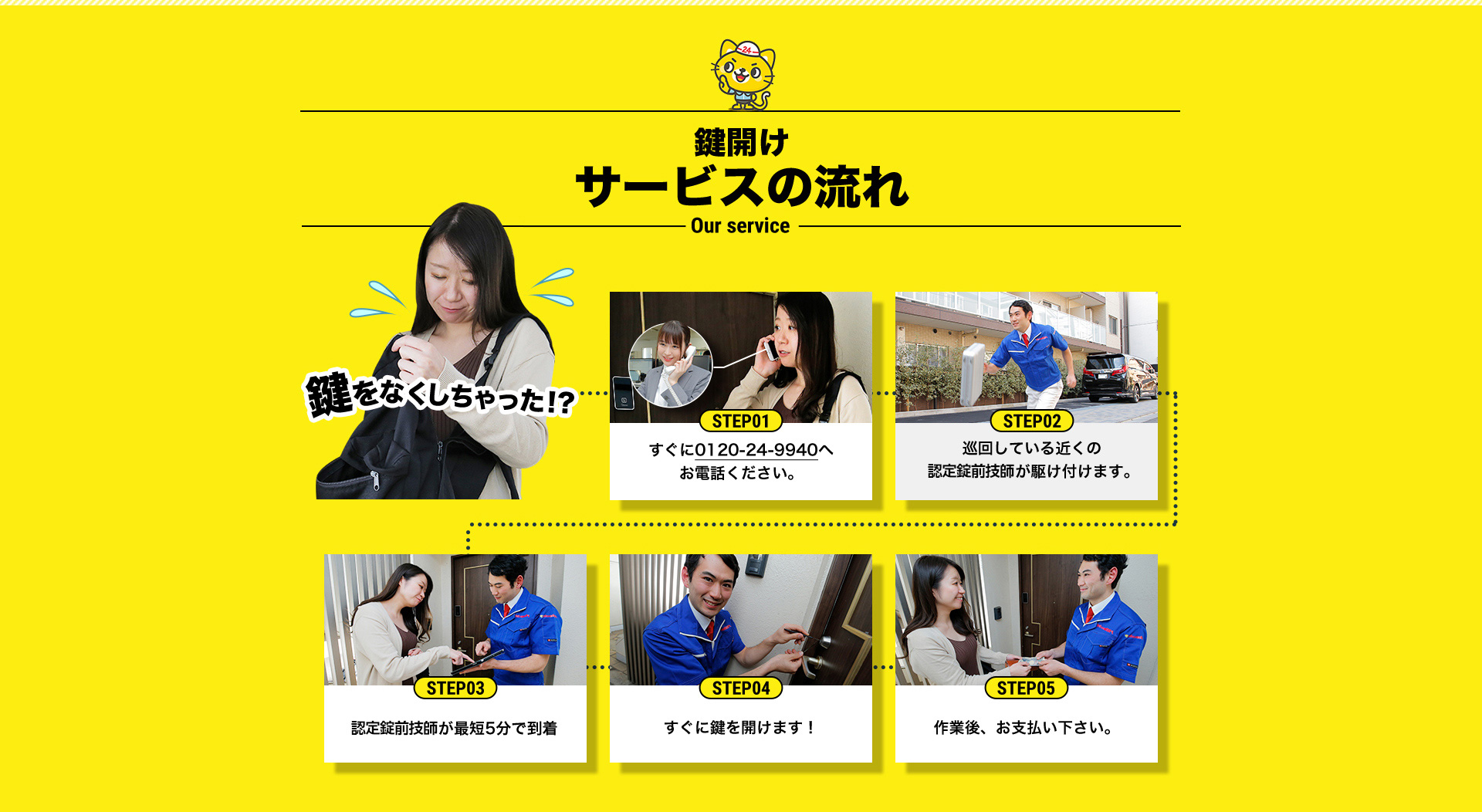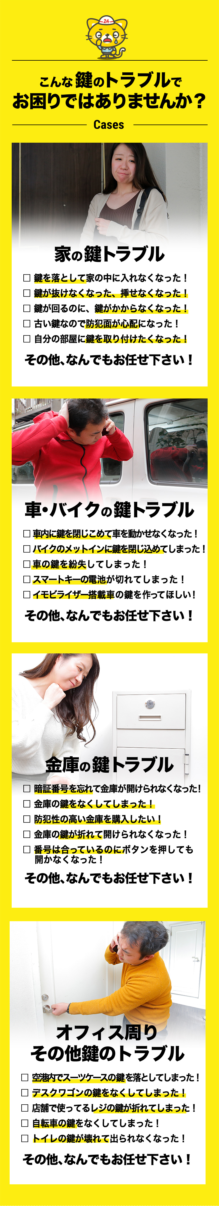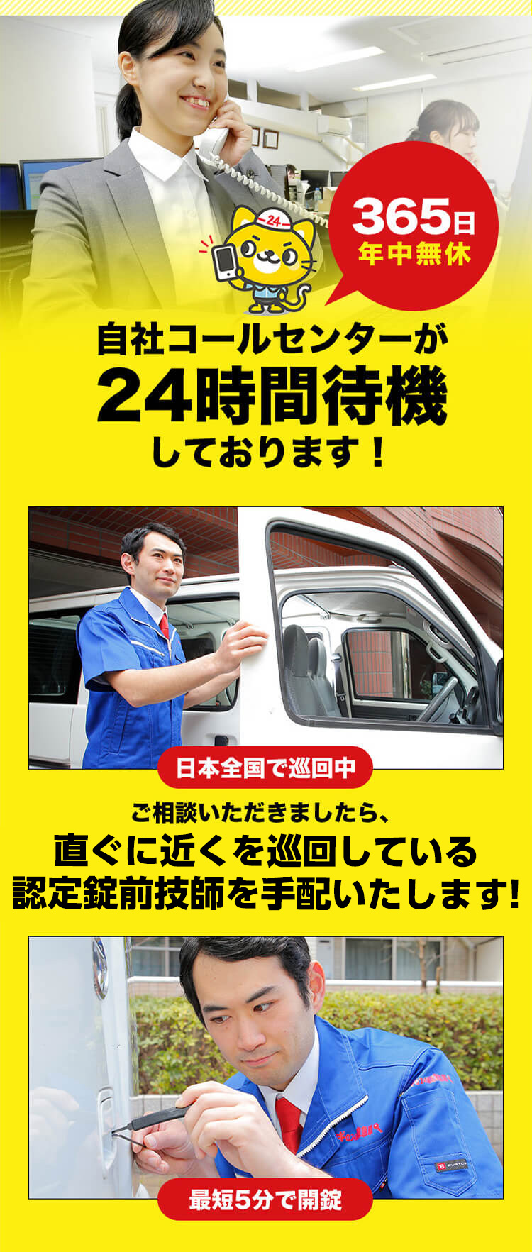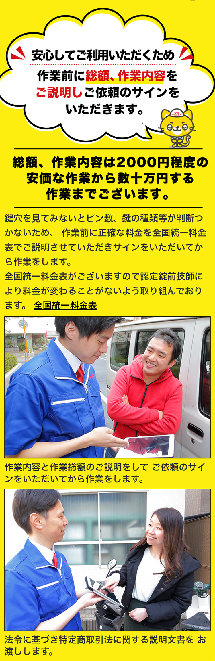 品川区で信頼されている「カギの出張24時間」は五反田、大井町エリアで迅速に対応いたします。明瞭な説明と正確な見積もりでお客様の信頼を得ることを最優先に考えています。地域に密着した親しみやすいサービスを提供し、作業後はお客様からの貴重なフィードバックをもとに、サービス品質を更に向上させています。